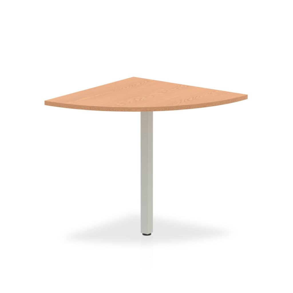 Impulse quarter round shaped meeting end | Attaches to desk for extra meeting space | Provides at desk break out zone | 25mm thick top | Attractive silver coated legs | 2mm abs protective edging | Heat resistant melamine finish | Steel to steel fittings