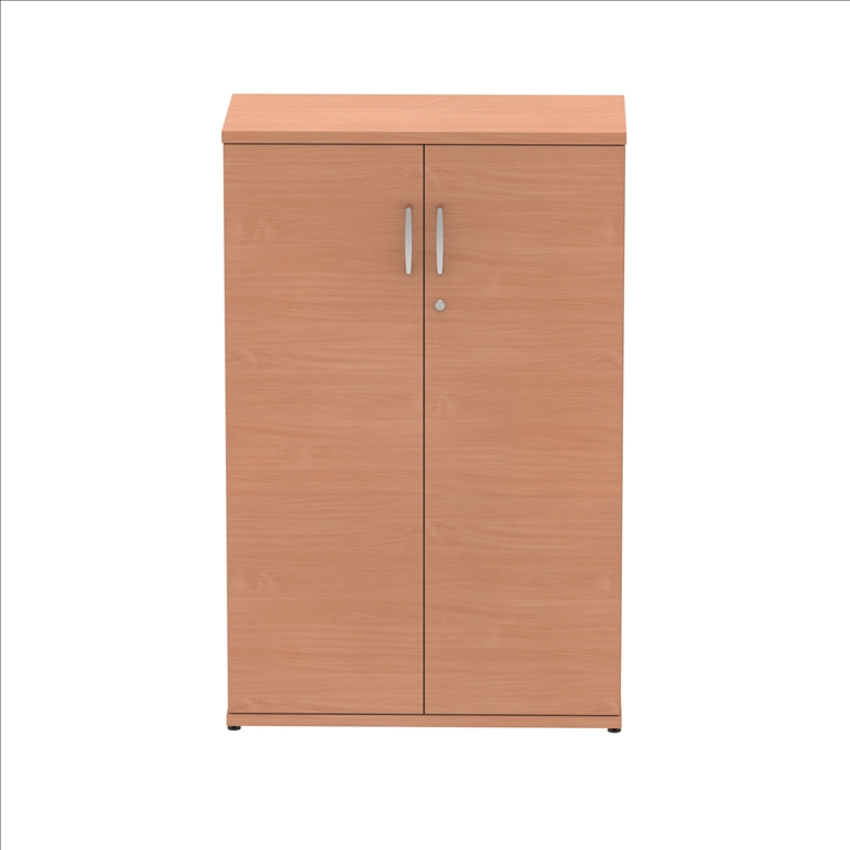 Impulse contract cupboard | Attractive wood finish | 25 thick tops | Matching doors with silver handles | Steel to steel fixings | 2mm abs protective edges | Locking doors | Adjustable shelves | 18mm side walls | Adjustable feet